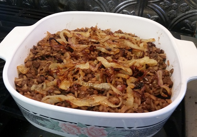 - Stir in lentils with liquid and another cup of water. Bring to a boil – reduce heat, cover and simmer about 15 minutes – until rice is tender.